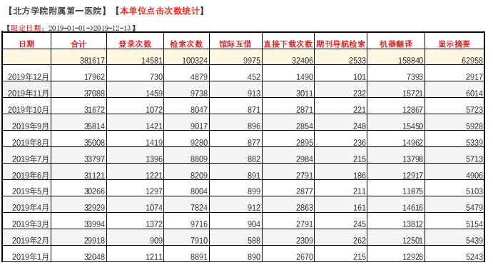 1、统计时间范围是2019年1月1日至2019年12月13日。